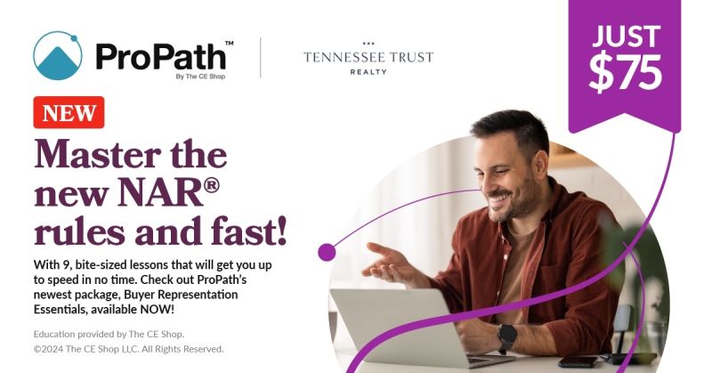 Maryville, TN, May 23, 2024 – Tennessee Trust Realty is pleased to announce a new education and career resource partnership with real estate educator, The CE Shop. This exciting new partnership will provide exclusive access to a one-stop shop education platform featuring Pre-Licensing, Exam Prep, Post-Licensing, and Continuing Education packages for all 50 states and D.C. Whether it's their industry-leading pass rates, 100% online courses, Professional Development offering, or their Agent Essential resource pages, this partnership is a valuable addition in helping agents, recruits, and students of Tennessee Trust Realty gain an edge in the real estate industry.
